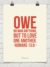 The Bible states that we need to owe no one anything except our love. In which case, whom do we owe our love to? When it comes to the gospel of Christ have we done everything that we are capable and responsible for at this time? To say yes is a peaceful and content state of mind and heart. To say no is unsettling. To say we are not sure is closer to the truth.