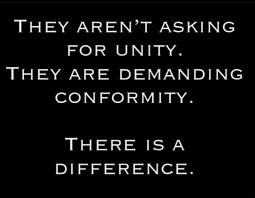 For real unity is built upon the values and teachings of the Holy Spirit. Conformity is built upon the exterior facade of dress and behavior.