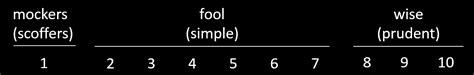 The Book of Proverbs defines three sets of people in regards to their maturity-level: the scoffer (also identified as the mocker), the simple (also known as the fool), and the wise (regarded as prudent).
